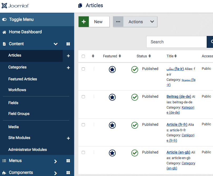 If you close "Articles: Edit" you got: