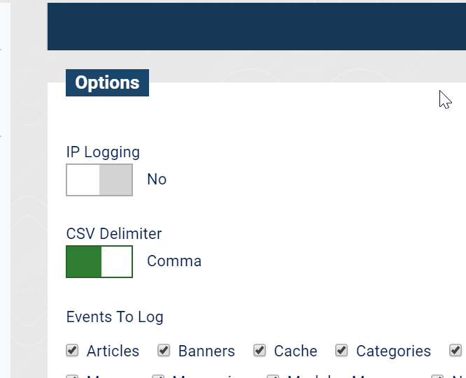 Options are Comma and Semicolon. There are other settings with 2 options ie Global Configuration > Articles > Positioning of the Links with options Below and Above.