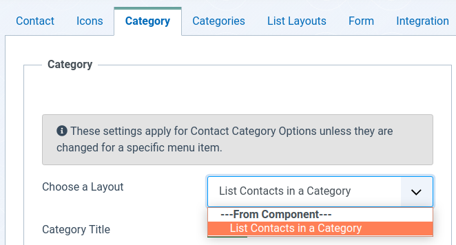 | Category | ⇒ | Administration Language & Strings Front End com_config com_contact com_content com_newsfeeds com_tags com_users |