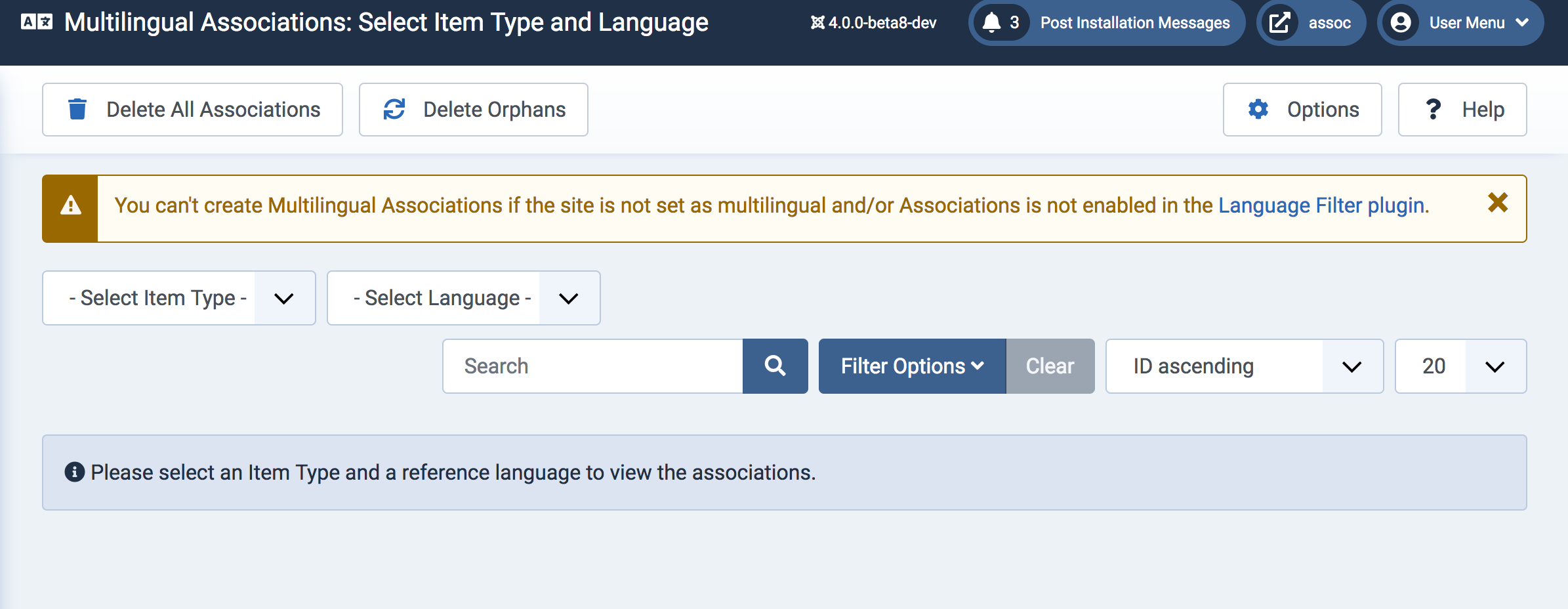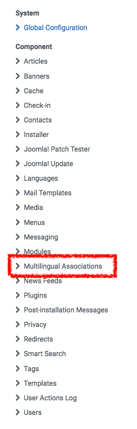 Multilingual Associations menu item always displayed.