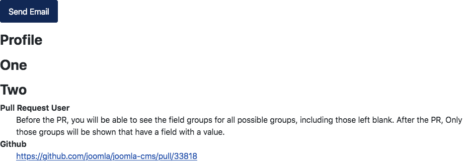 Before the PR, you will be able to see the field groups for all possible groups, including those left blank.