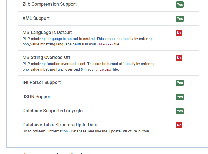 In the required section of the pre-update check there are three requirements that have some extra information available if the requirement is not met.