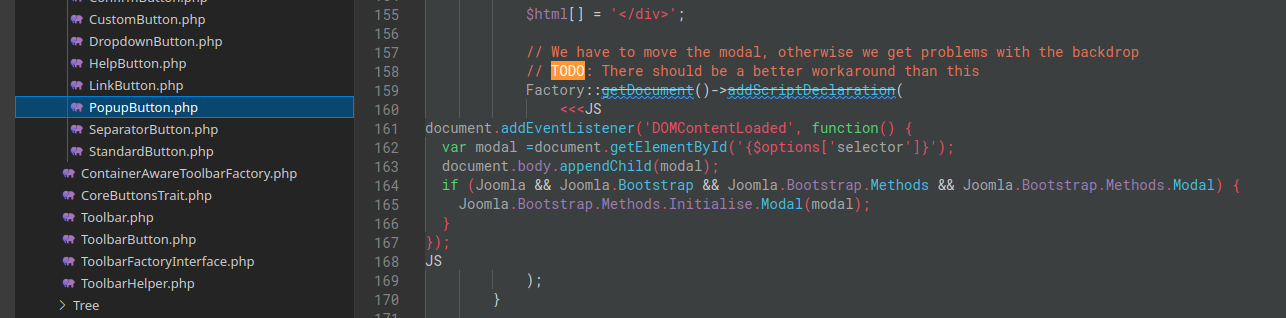 libraries/src/Toolbar/Button/PopupButton.php ... line 158 ... THIS IS NOT MY PROPOSAL, IT IS A JOOMLA 4 CORE CODE solving some part of the system but leaving other parts unsolved.