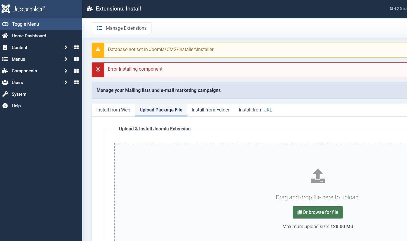 Install whatever extension on Joomla 4.2, for example Acymailing, JEvents, etc
