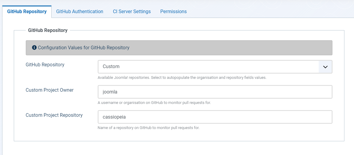 If you use a custom repository the issue tracker doesn't link to the given repo but instead links to the joomla-cms repo.