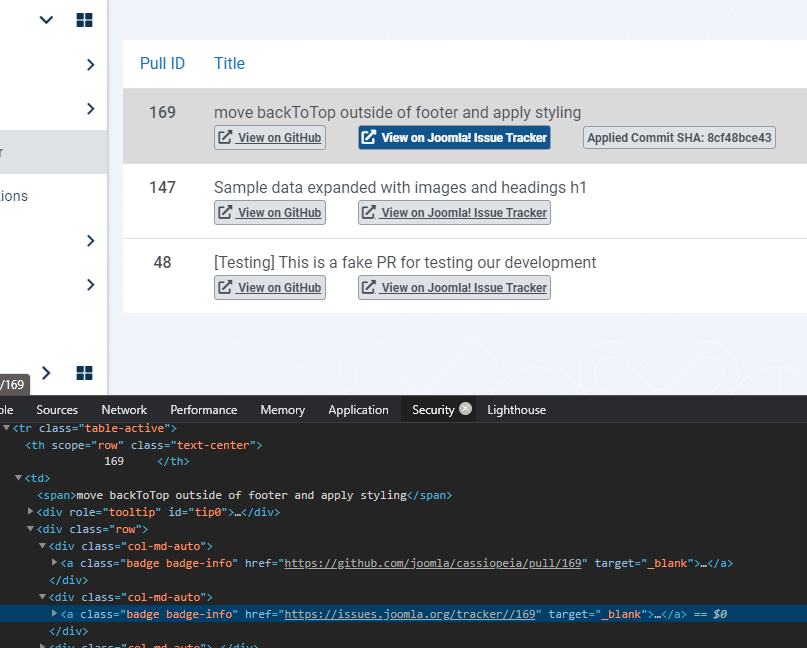brings up joomla-cms issue of same #